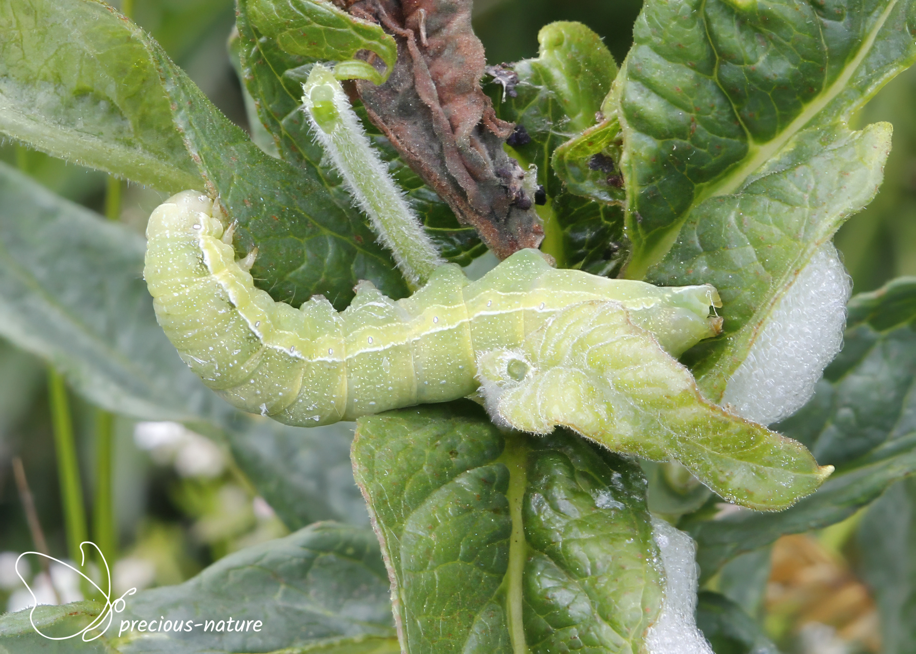 Een nachtvlinder die ik wat vaker op websites van insectenbestrijding tegen kom is de groente-uil (Lacanobia oleracea). Dit heeft te maken met het leggen van hun eitjes op gewassen die in kassen worden gekweekt. Deze roestbruine uil heeft een wit geringde ringvlek en een oranjegele vlek in de donkere niervlek. Kenmerkend is de duidelijke witte golflijn met de ‘W’ er in. De vliegperiode is van april tot in oktober in twee en soms drie generaties en de spanwijdte bedraagt 28-38 mm. Waardplant: brandnetel, sintjanskruid, hazelaar, wilg en hop. Engelse benaming: Bright-line Brown-eye. Friese benaming: Grienteûltsje.